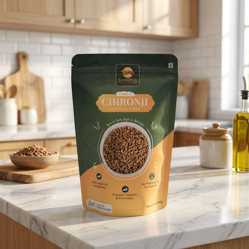 Sourced from the heart of Bundelkhand, these premium Chironji seeds are a versatile addition to your kitchen. Perfect for sweets, snacks, or garnishing, they bring a nutty flavor and rich nutrition to your dishes.