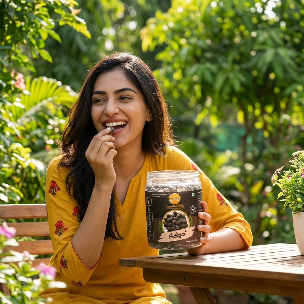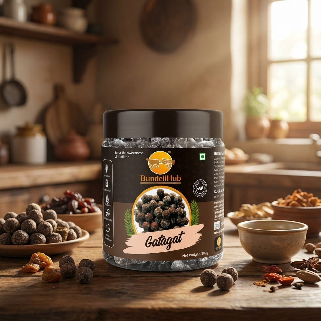 Bundeli Hub Gatagat चुरान balls 100% natural और preservative-free हैं। इन्हें traditional recipe के अनुसार बनाया गया है, जिसमें jaggery, ber, amla, ajwain और black salt शामिल हैं।